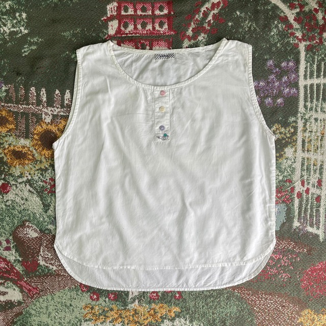 【USED】Ivory Cotton Tank with Embroidery