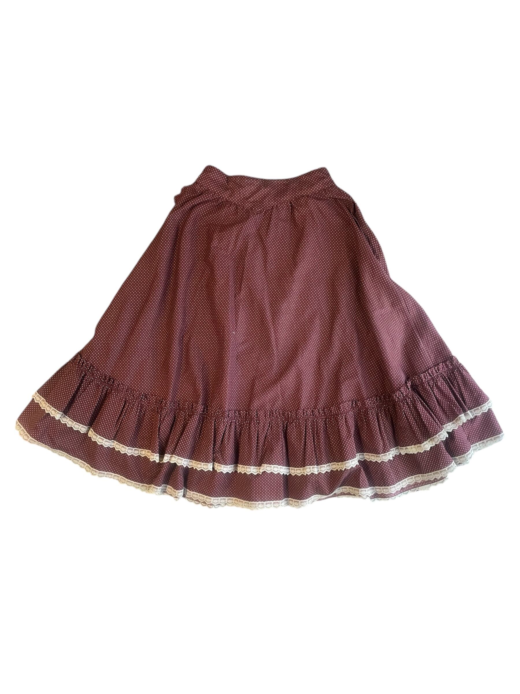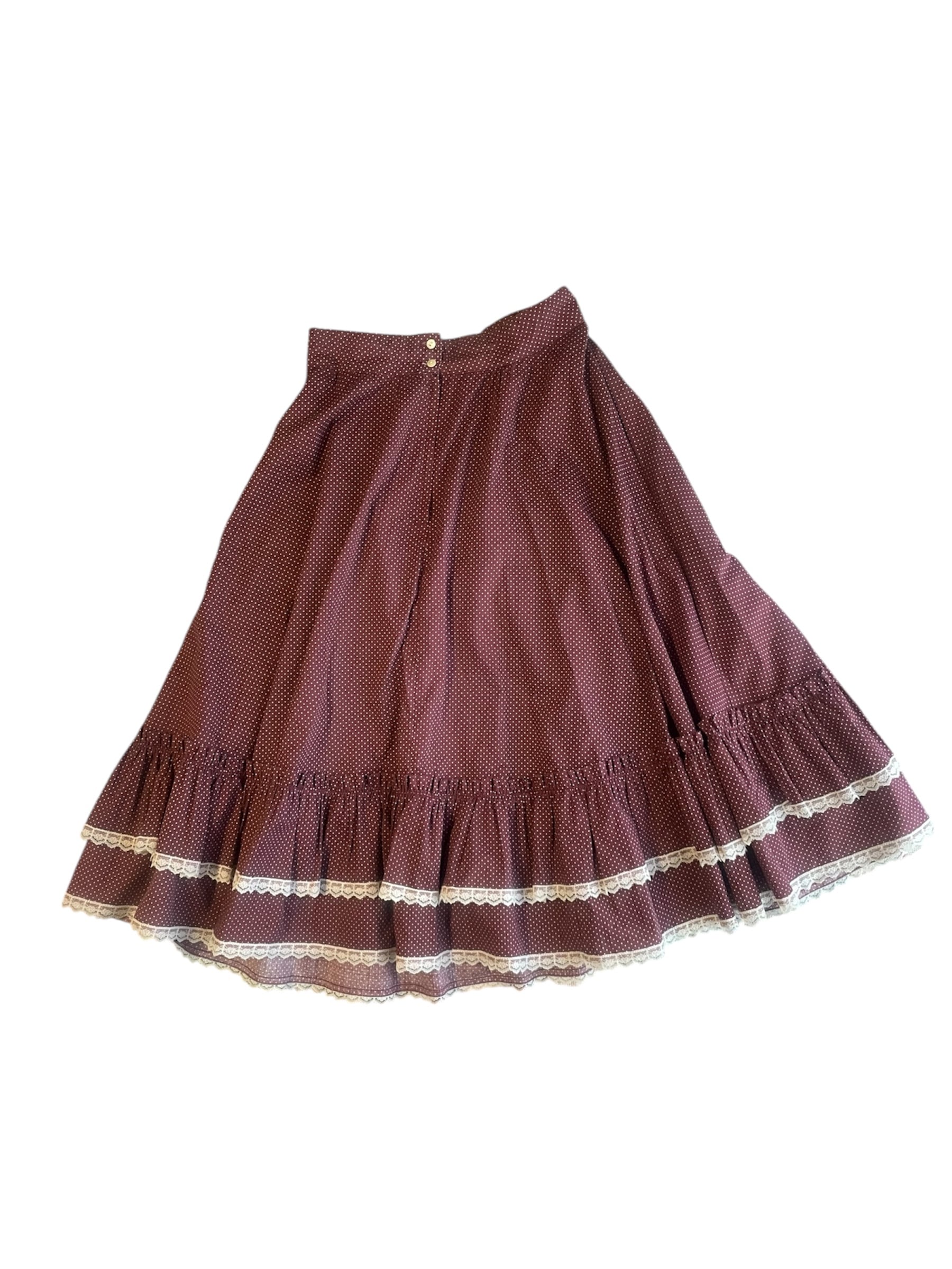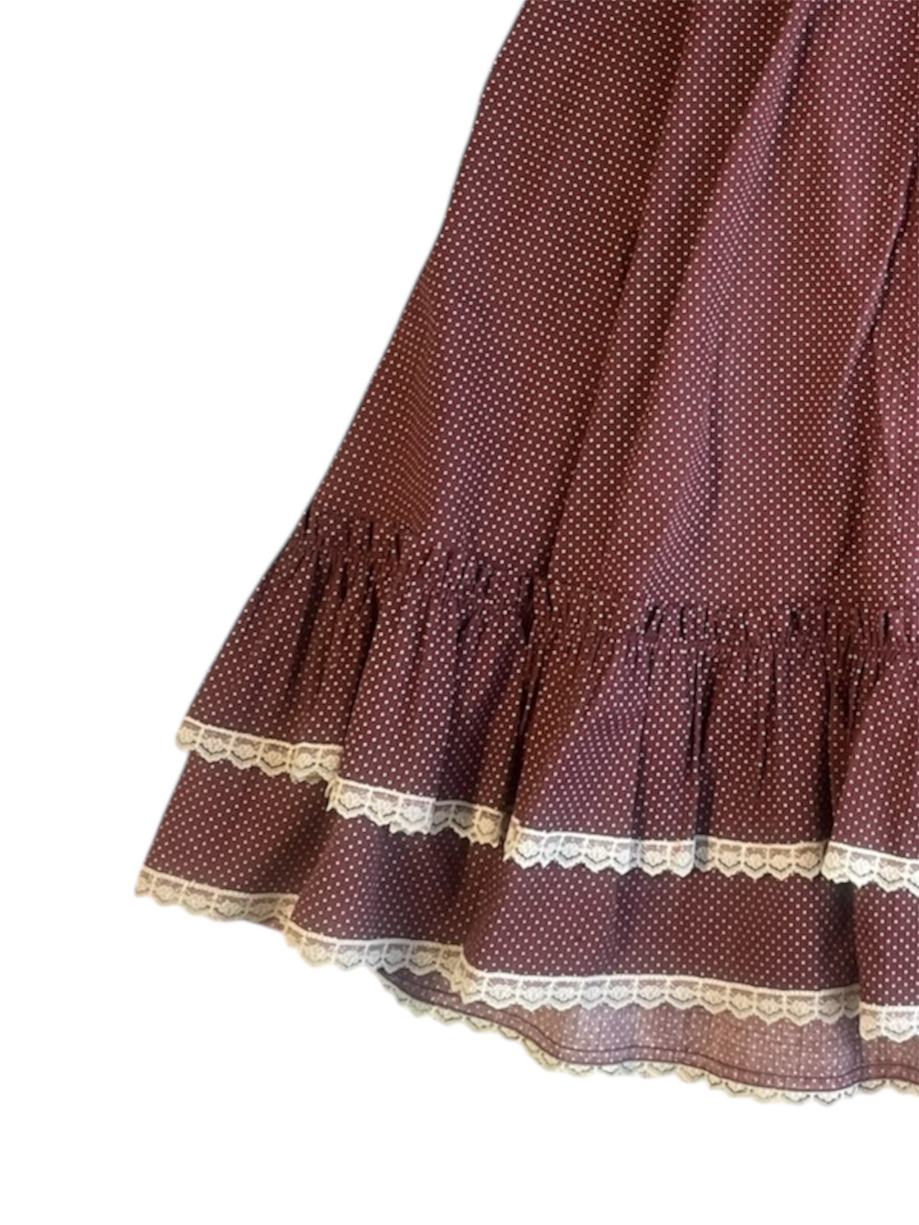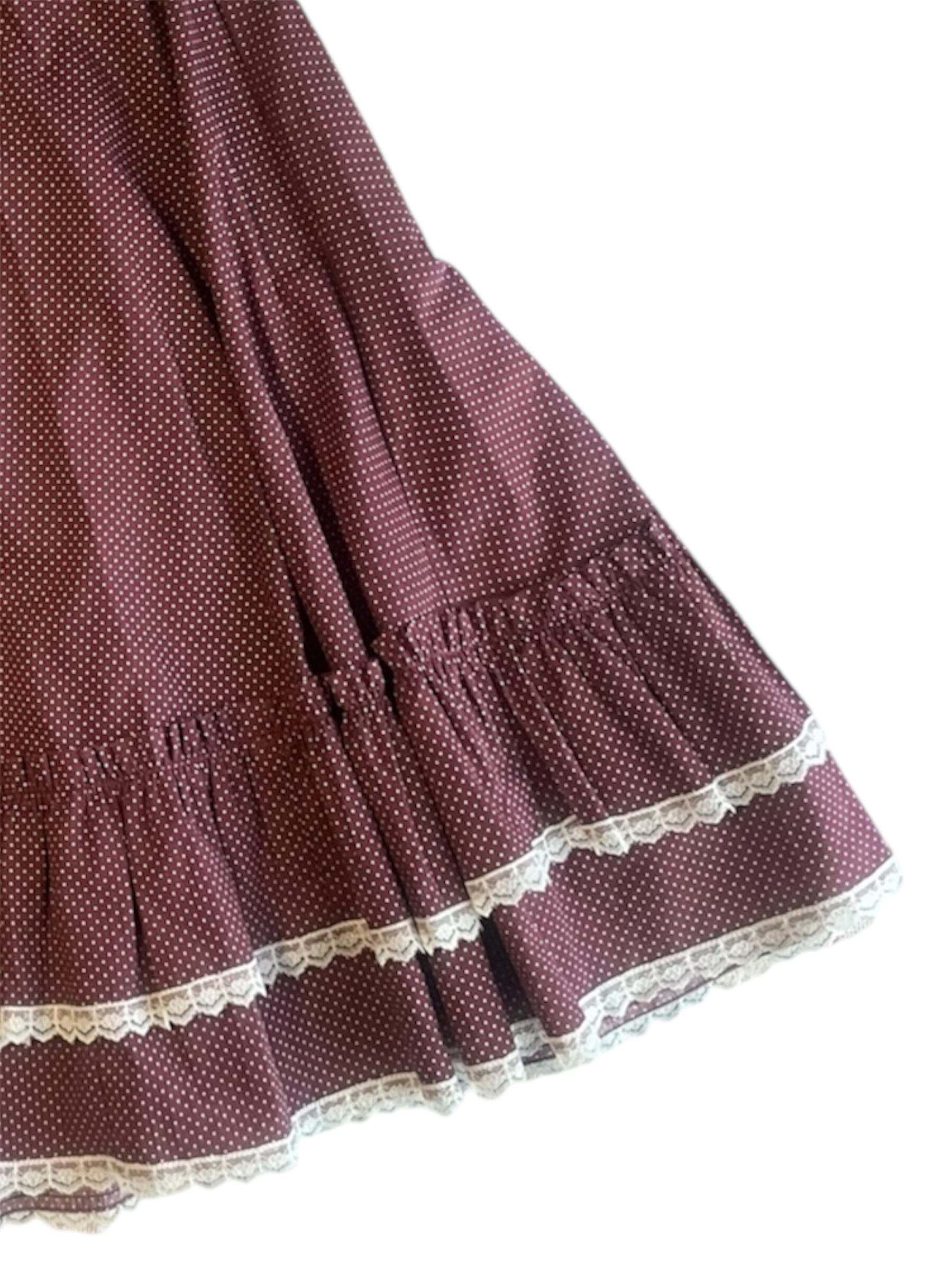【USED】Burgundy Polka Dot Midi Skirt with Lace Trim