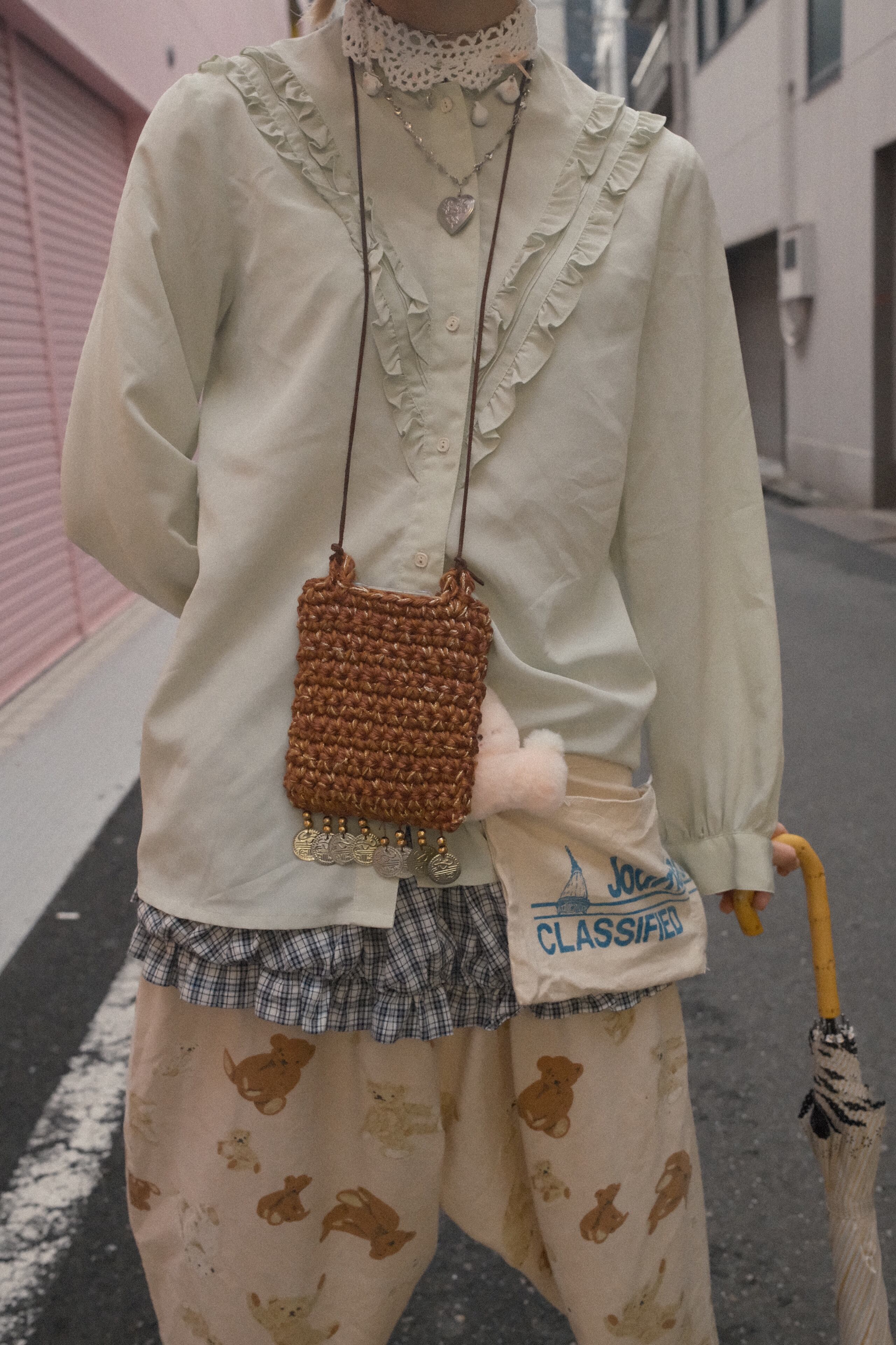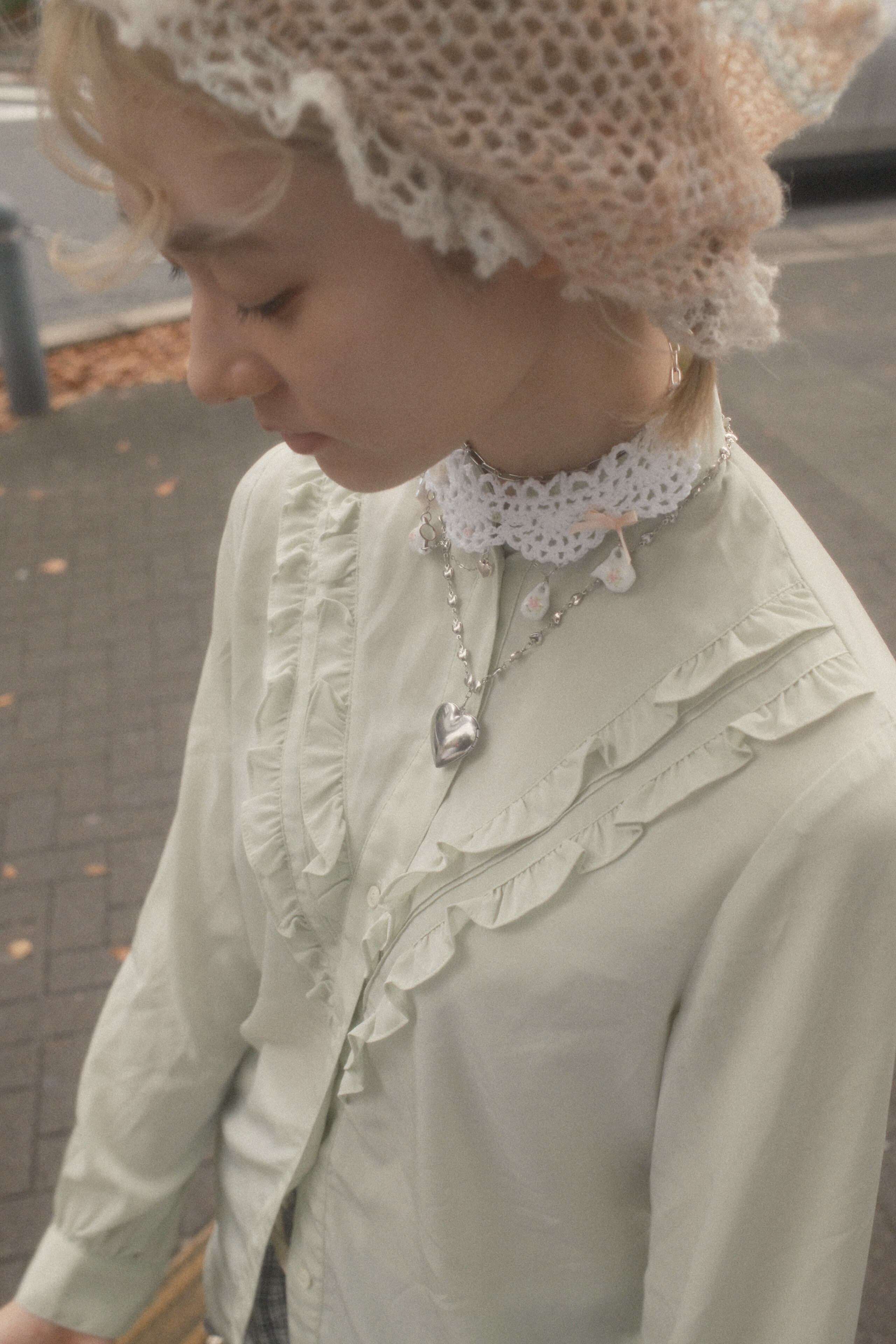 【USED】Frill green stand collar shirt