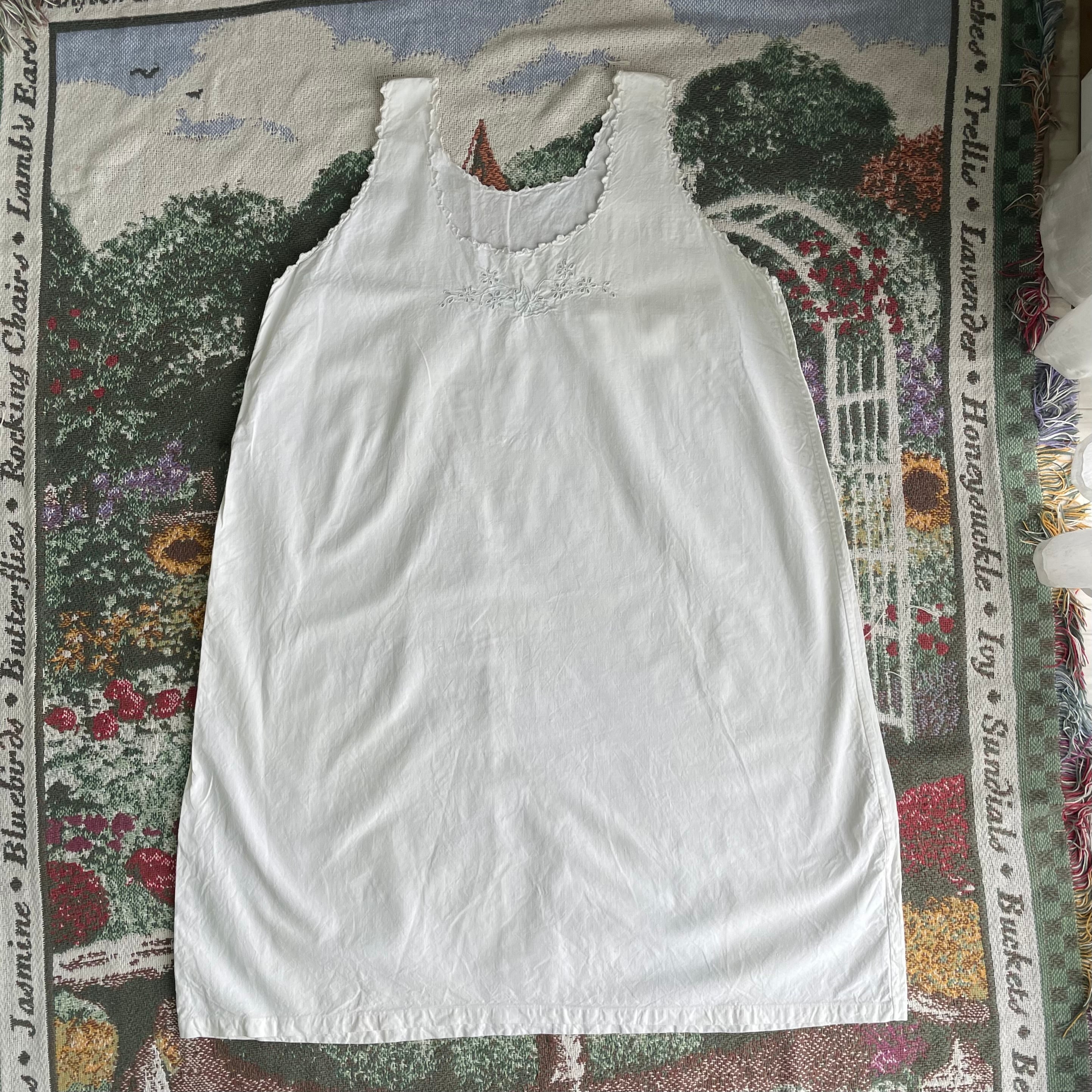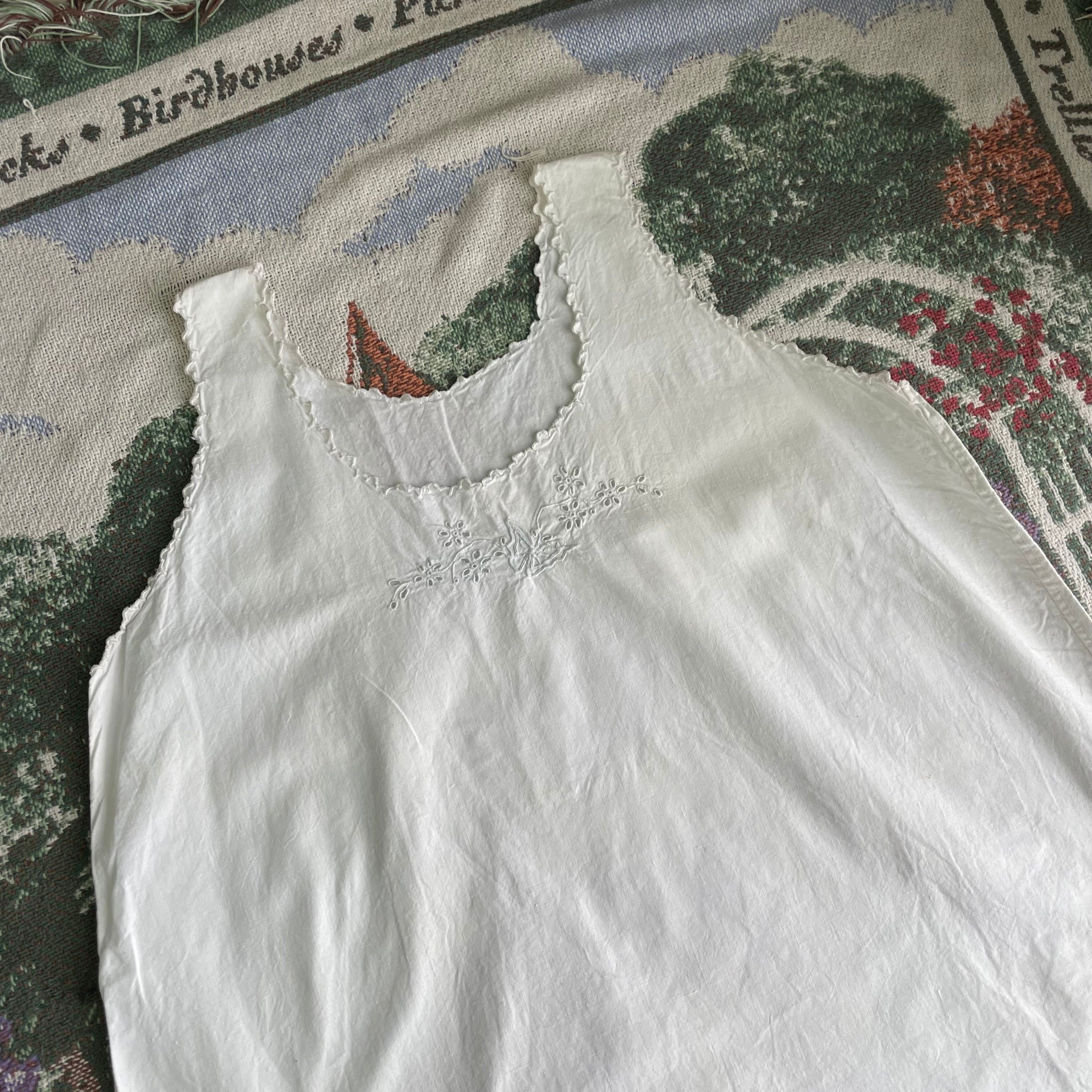 【USED】White Embroidered Cotton Slip Dress