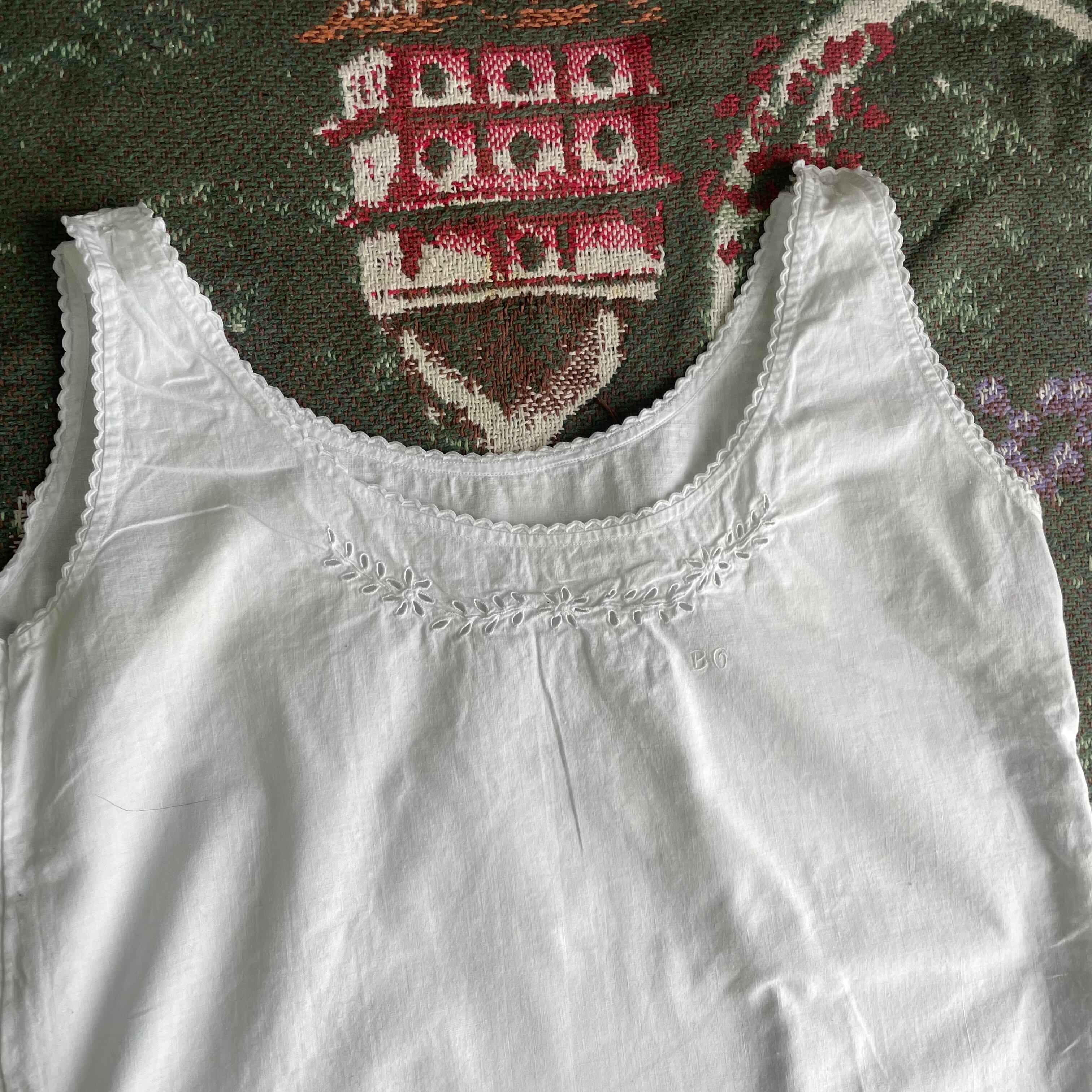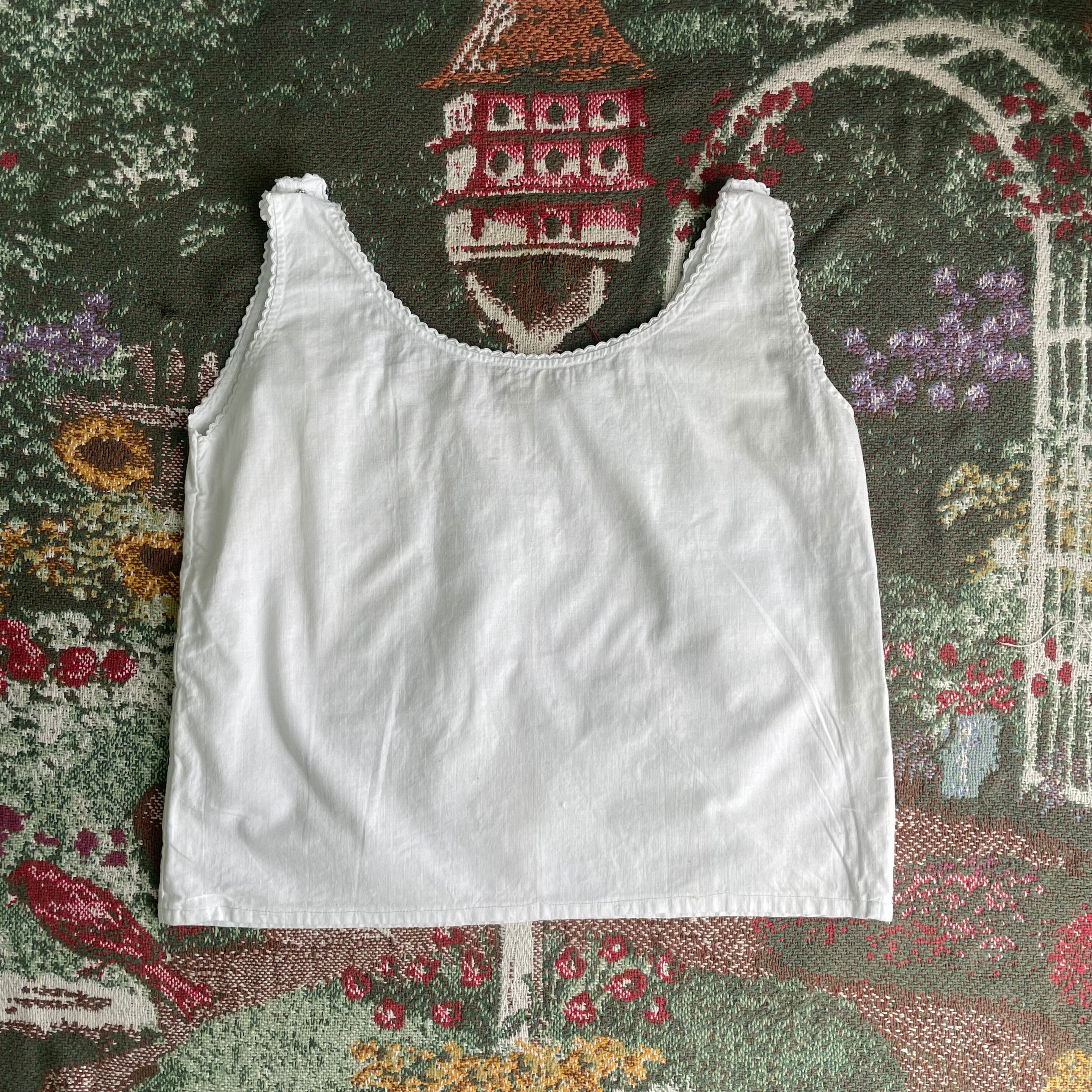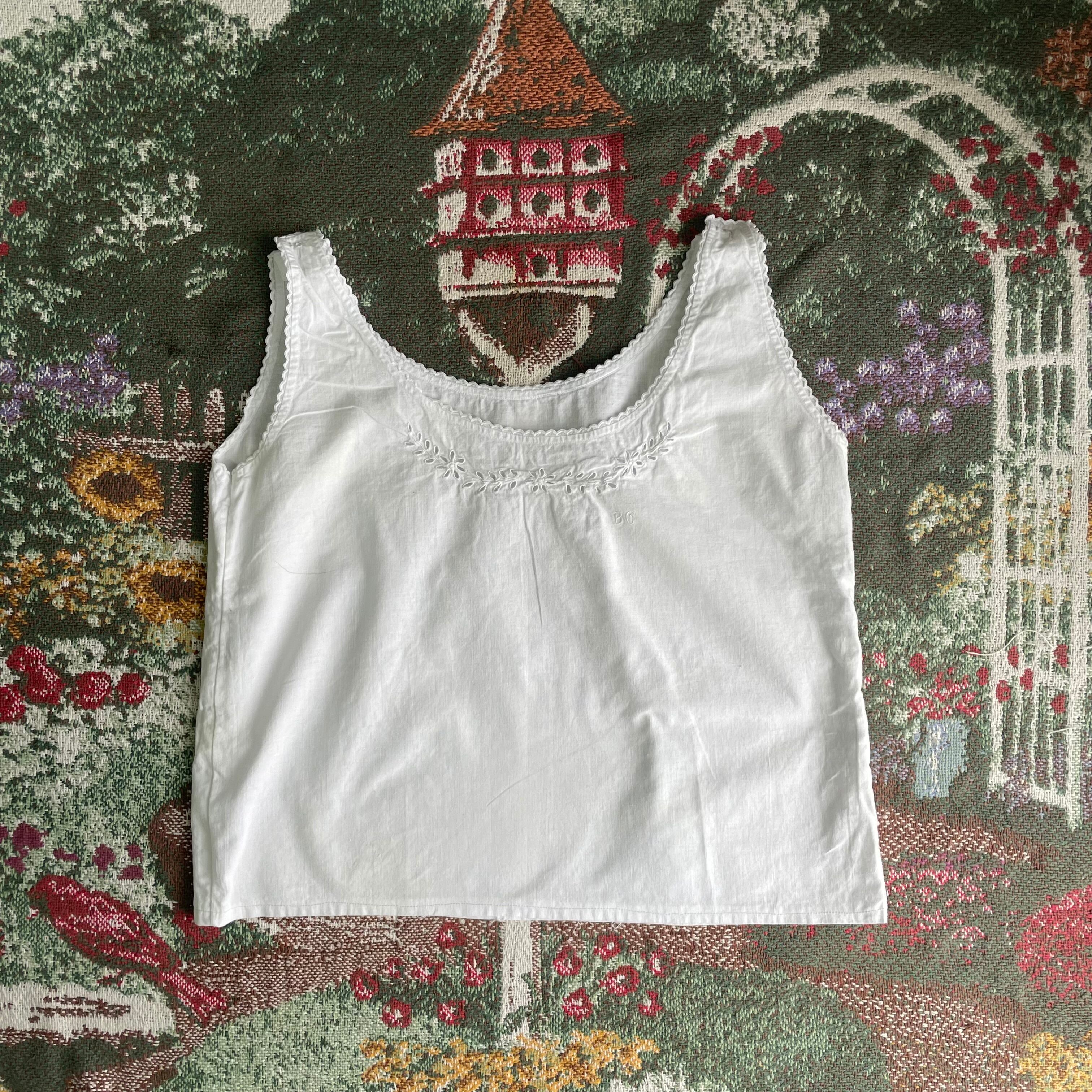 【USED】Ivory Cotton Tank with Embroidery