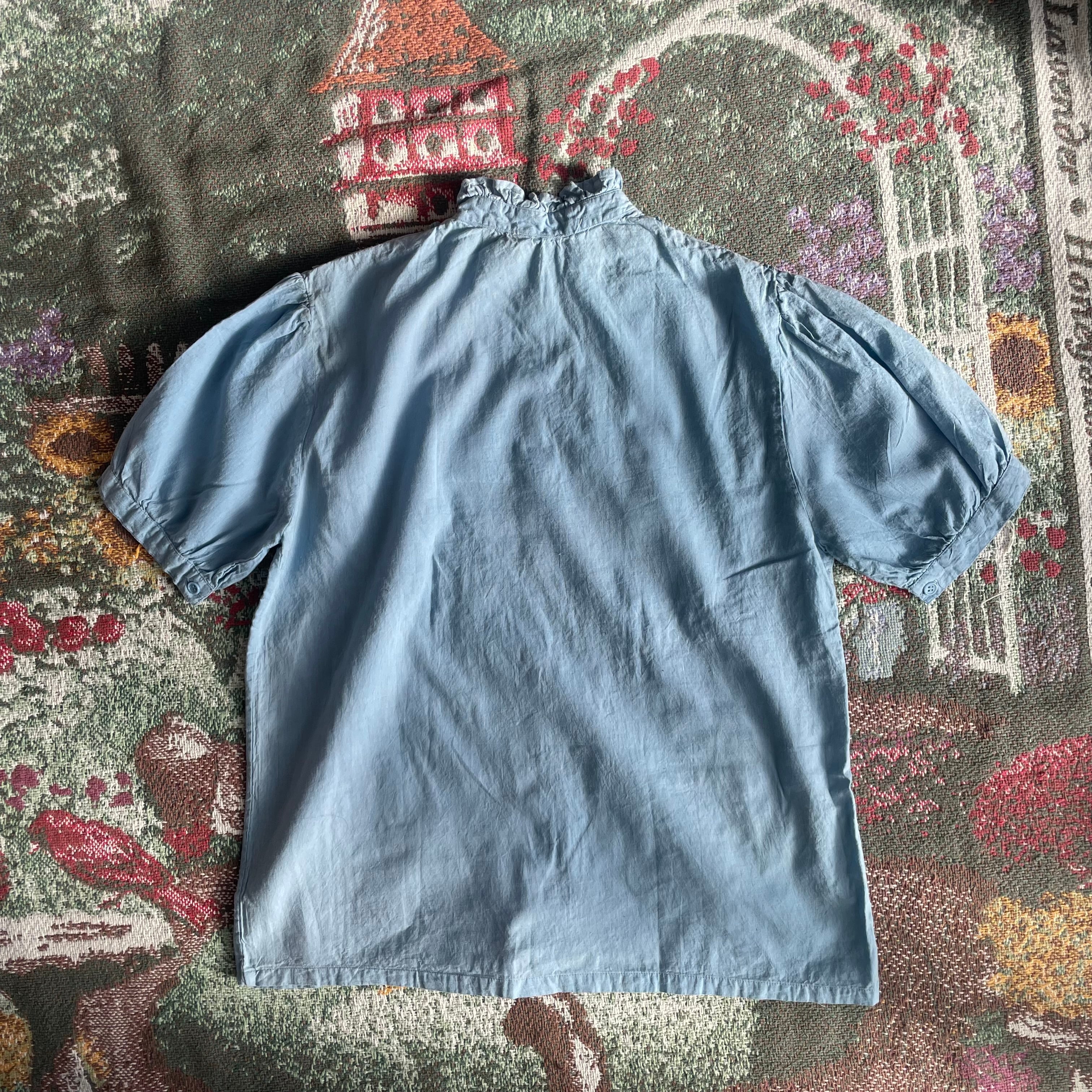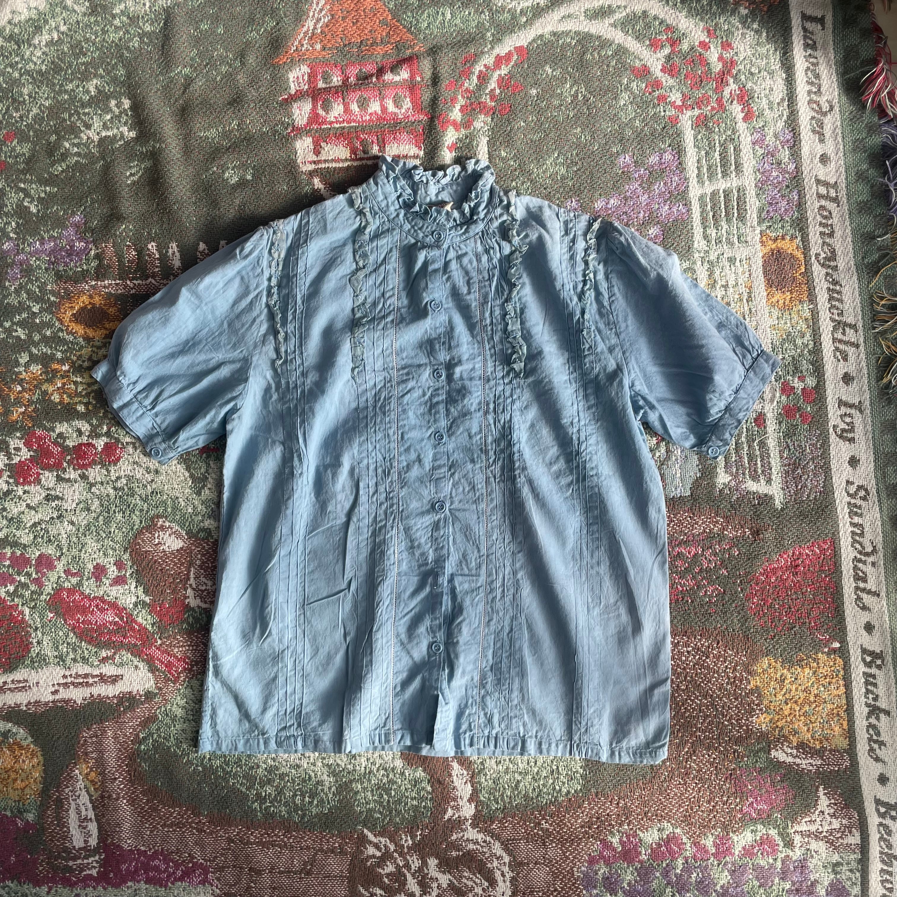 【USED】Dusty Blue Ruffle Pintuck Blouse