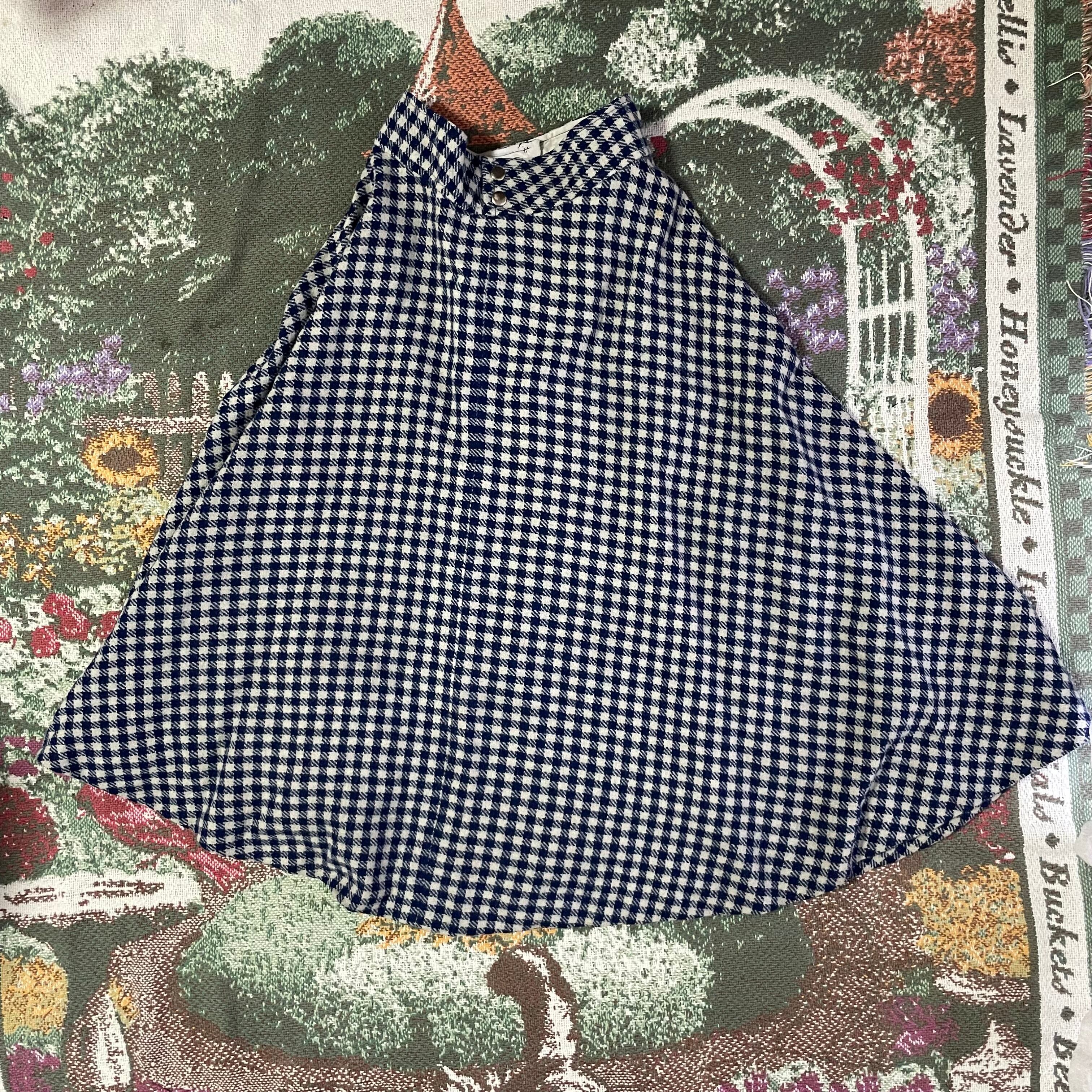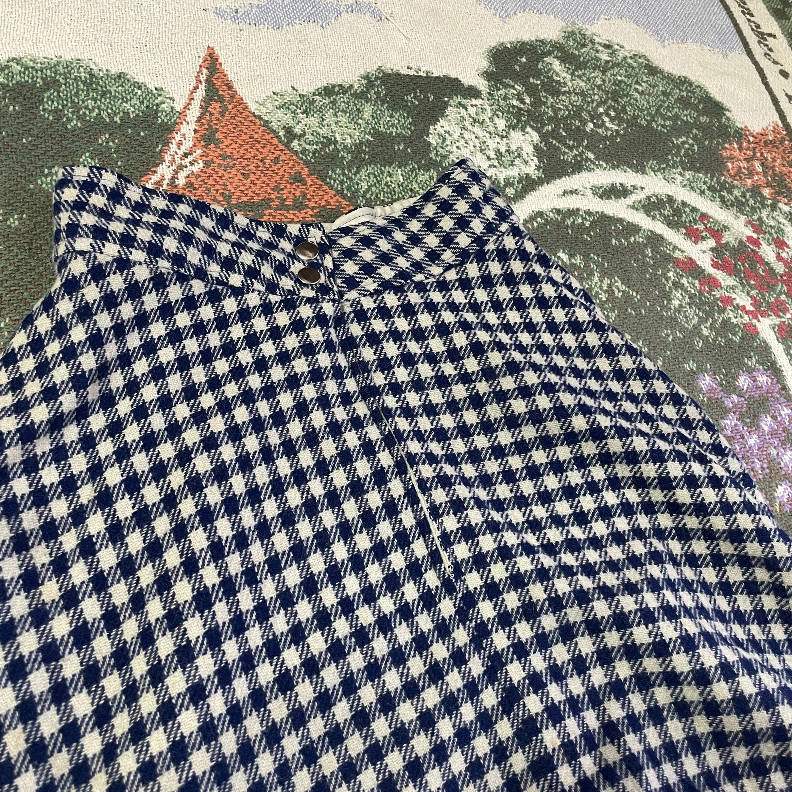 【USED】Retro Navy Plaid Swing Skirt