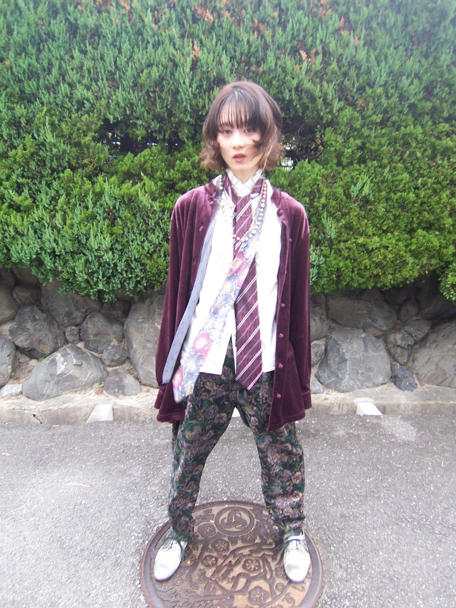 【USED】vintage velor all over pattern pants